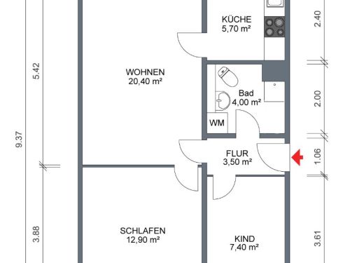 - Wohnfläche: 57,46 m²
