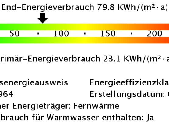 - Energieverbrauchkennwert: 79,80 kWh/(m²*a)