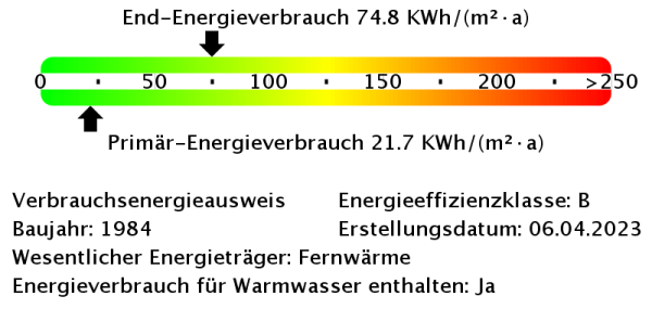 - Energieverbrauchkennwert: 74,80 kWh/(m²*a)