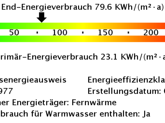 - Energieverbrauchkennwert: 79,60 kWh/(m²*a)