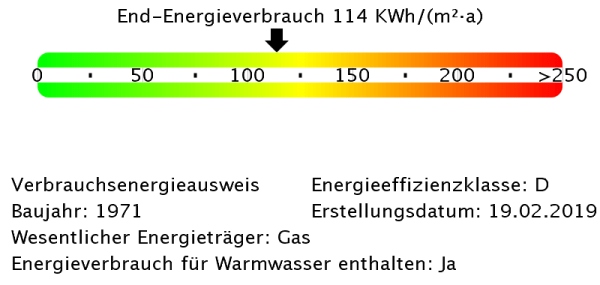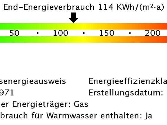 - Energieverbrauchkennwert: 114,00 kWh/(m²*a)