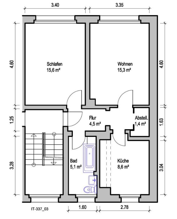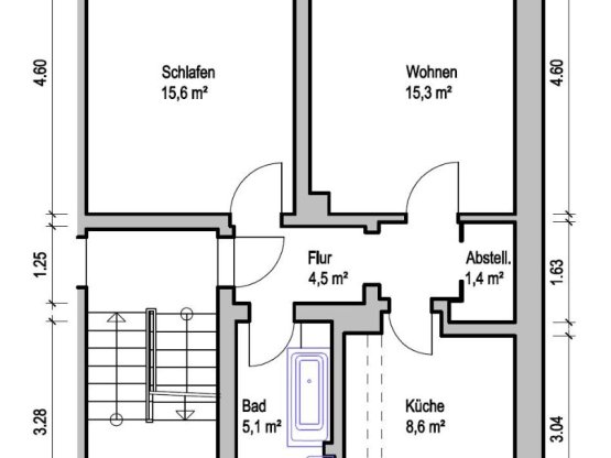 Zwei- Zimmer- Wohnung mit Badewanne und Ausblick ins Grüne