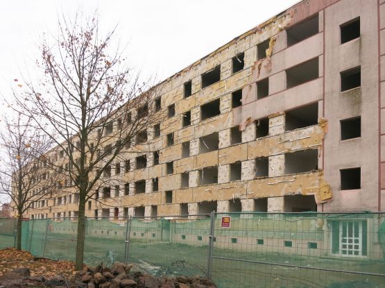 Die letzten Mieter sind ausgezogen, der Bauzaun steht, die Versorgungsleitungen wurden abgeklemmt. Für den Block 3-8 in der Lomonossowstraße im Mueßer Holz tickt die Uhr. Das Gebäude war einst Domizil für 100 Mietparteien, aber in den letzten Jahren fanden sich einfach keine Mieter mehr. Nun sind die Tage gezählt und der Block wird Platte für Platte abgetragen. Im ersten Quartal des kommenden Jahres sollen die Arbeiten beendet sein. An diesem Platz wird eine Grünfläche angelegt.