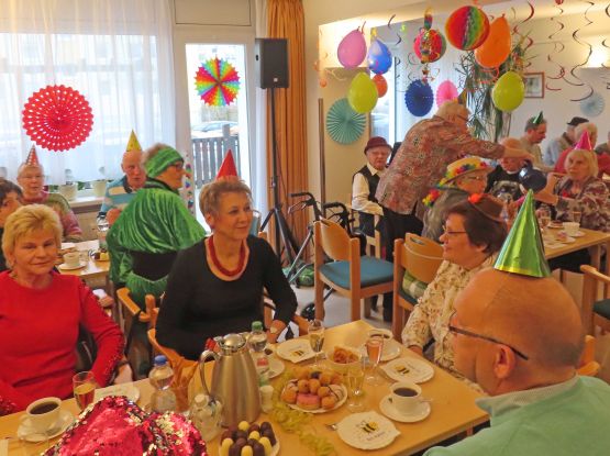 "Helau" heißt es in diesen Tagen in den Nachbarschaftstreffs "NEBENAN" des Vereins Hand in Hand. Bunte Kleider, lustige Hüte, Luftballons und Papierschlangen, dazu fröhliche Menschen und Stimmungsmusik - so sieht es an den Faschingsnachmittagen in den Treffs aus. Die beliebten Anziehungspunkte locken die Bewohner der umliegenden Gebäude zu ein paar Stunden Fröhlichkeit und Gemeinschaft. Da bleibt kein Stuhl frei, das Angebot wird gern angenommen. So kommt man bei Kaffee, Kuchen und kultureller Umrahmung gern ins Gespräch und einander wieder näher.