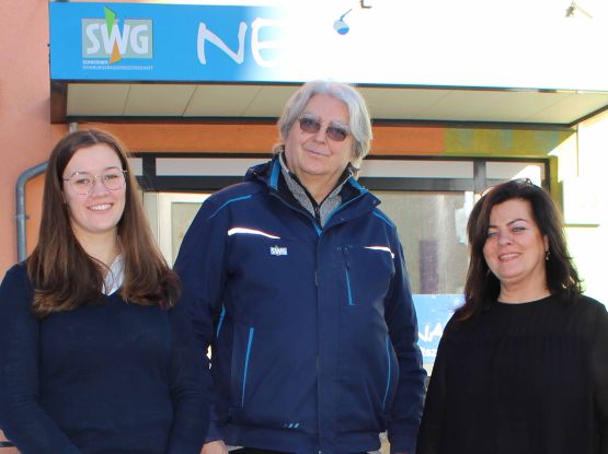 Jürgen Wörenkämper verabschiedet sich als Abteilungsleiter Soziales Management bei der SWG und übergibt den Staffelstab an Marion Kühl und Laura Wichmann.