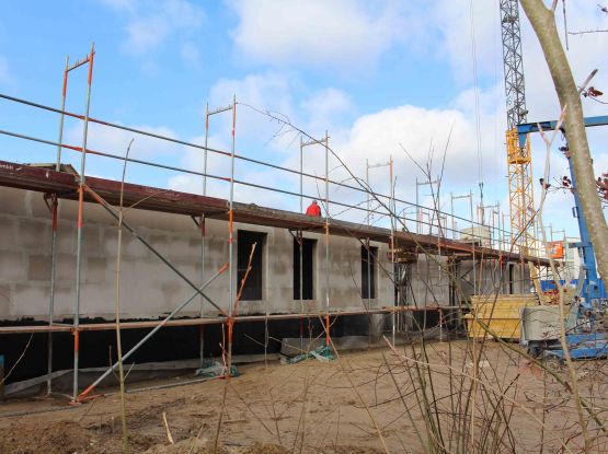 Gerade erst wurde der Grundstein für das dritte Gebäude gelegt und die Zeitkapsel versenkt - keine 4 Wochen später reckt sich bereits das Erdgeschoss in die Höhe. Auch die Decke ist bereits gegossen.