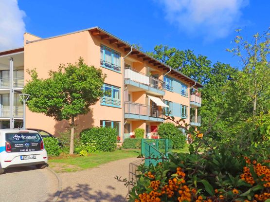 Die Fassade der Senioren-Wohnanlage im Buchenweg 1 hat einen neuen farbenfrohen Anstrich erhalten.