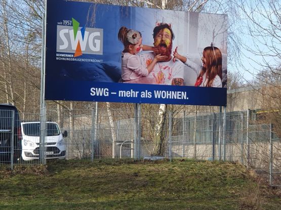 Ein frischer Wind weht durch die Lomonossowstraße, denn seit Kurzem ziert das neue Werbeschild den Bauhof. Der farbenfrohe Aufsteller ist ein einladender Blickfang.