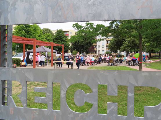Zwischen Max-Reichpietsch- und Friedrich-Engels-Straße auf dem Großen Dreesch hatten die Mitarbeiterinnen des Vereins "Hand in Hand" alles vorbereitet: Es wurden Sitzgarnituren aufgestellt, Kaffee gekocht, für Unterhaltung gesorgt...
